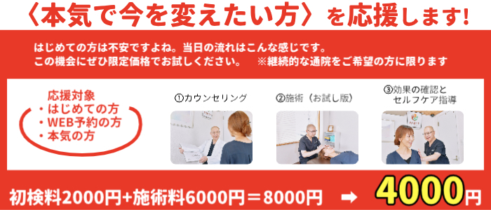 セロトニン活性療法に加えて、あなたのお体の症状に合わせた手技をおこなうこともあります。