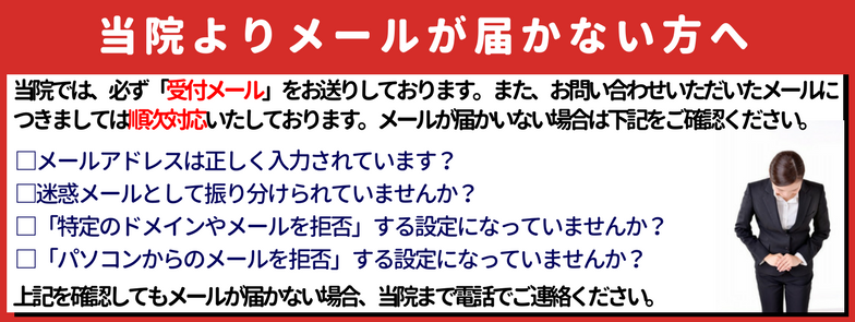3日以上たってもこちらからのメールが届かない場合は、誤って迷惑メールに紛れ込んでいる可能性があります。ご確認ください。